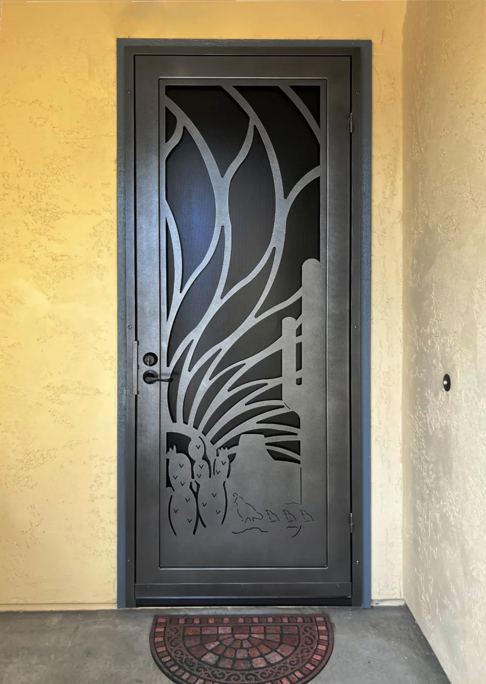 Featuring hand-cut scrollwork and desert details like quail and cacti, the Ajo brings a warm, secure, and authentic touch to your entryway.